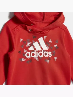 Dein kleiner Schatz erkundet neugierig seine Welt. Da darf ein bequemes Outfit natürlich nicht fehlen. Dieses adidas Set für Babys und Kleinkinder besteht aus einer Jogginghose und einem Hoodie. Das verspielte Logo-Design auf der Brust sorgt außerdem für ordentlich adidas Vibe. Mit deinem Kauf von einem adidas Baumwollprodukt unterstützt du den nachhaltigen Anbau von Baumwolle. Wir von adidas haben Plastikmüll den Kampf angesagt und daher wurde dieses Design mit recycelten Materialien hergestellt.