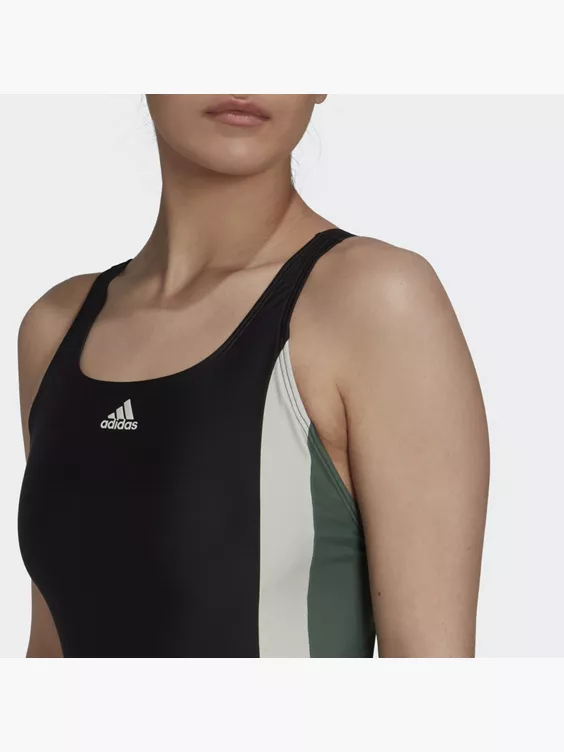 Erst ziehst du voll konzentriert deine Bahnen und anschließend verwöhnst du deine müden Muskeln im Wärmebecken – dieser adidas Badeanzug ist dabei der perfekte Begleiter. Er ist aus leichtem, weichem Material und garantiert dir im und am Wasser ein bequemes Tragegefühl. Die Colourblocking-Details sorgen außerdem für einen sportlich-stylishen Look.Das Design wurde aus chlorresistentem Material mit regeneriertem ECONYL® Garn hergestellt.