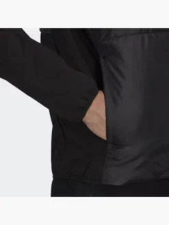 Diese adidas Hybrid-Jacke kombiniert den Komfort eines Sweatshirts mit der Wärme eines Parkas. Sie ist perfekt für kurze Wanderungen, einen Abend in der City oder einen kurzen Abstecher in den Supermarkt. Kurz gesagt, die ideale Ergänzung zu deinen Outfits für kaltes Wetter. Ihre Kombination aus leicht bauschiger Füllung und Synthetik-Isolation macht sie superbequem. Natürlich dürfen für den sportlichen Style auch die 3-Streifen nicht fehlen.Das Produkt ist Teil unseres Engagements gegen Plastikmüll und hat einen Recycling-Anteil von mindestens 60 %.