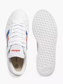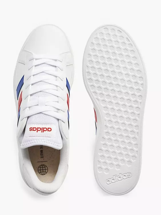Ohne diesen Grand Court ist deine Sneakersammlung nicht komplett. Der Schuh hat ein komplettes Makeover verpasst bekommen, darunter eine robuste Cupsohle für optimalen Grip bei nassem Untergrund. Und das Obermaterial aus weichem Synthetikleder sorgt mit den klassischen 3-Streifen für authentischen adidas Vibe.Mit einem Recycling-Anteil von mindestens 50 % im Obermaterial ist dieses Produkt nur eine unserer Lösungen im Kampf gegen Plastikmüll.