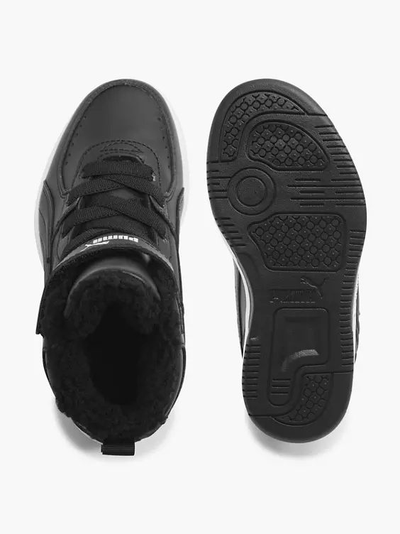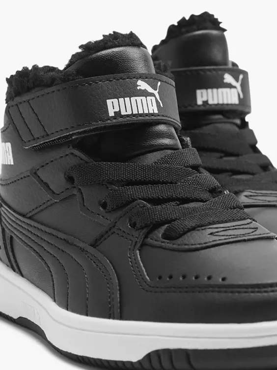 Dieser Retro-Basketball-Sneaker überzeugt sowohl auf als auch abseits des Platzes – ein echter Gamechanger. Der Rebound Joy Fur Sneaker für Kinder präsentiert sich mit perfekten Perforationen, klassischen Linien, mittelhohem Schaft und Klettverschluss am Knöchel für zusätzlichen Halt sowie auffälligem PUMA Formstrip und Logo.