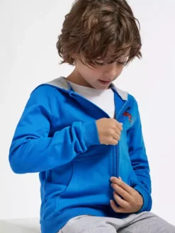 - modische Sweatjacke in blau mit Kontrast-Kapuzenfutter